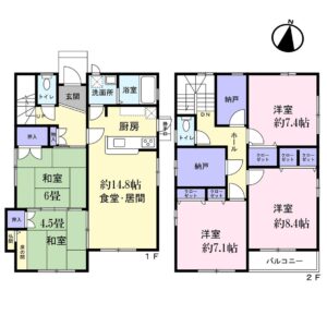 価格:2,080万円 土地:163.86㎡(49.56坪) 建物:128.29㎡(38.80坪) 構造:軽量鉄骨造2階建 建築年月:平成13年7月 用途地域:第一種住居地域 建ぺい率:60% 容積率:160% 間取り:5LDK